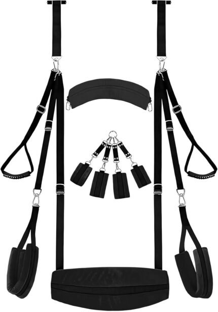 BDSM Sex Swing Bondage Restraints Kit – 2 in 1 Door Sex Swings with Handcuffs Wrist & Thigh Slave, Sex Toys with Adjustable Straps Thigh Restraint Cuffs Neck to Leg, Adult Sex Toys for Couples, Black