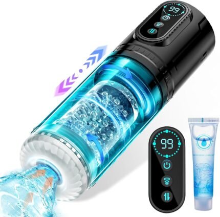 Male Masturbator Penis Pump – Male Sex Toys for Men with Upgrade 12 S Vacuum Pump & 7 Thrusting Rotating Vibrating Sucking Licking LCD Adult Toys Mens Sex Toys Pumps & Enlargers