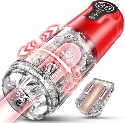 Male Masturbator Sex Toys, Automatic Male Masturbators Sex Toy with 9 Thrusting & Rotating Modes, Mens Sex Machine Electric Pocket Pussy with Cover, LCD Display Male Stroker Adult Sex Toys