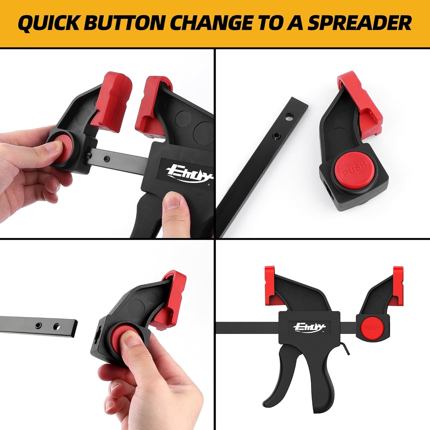 CLAMP & SPREADER: The unique quick-change button design allows the f clamp to be a spreader as well. Just press the red button to take the jaw off and then reverse it before putting it back in, you will get the spreader you need.