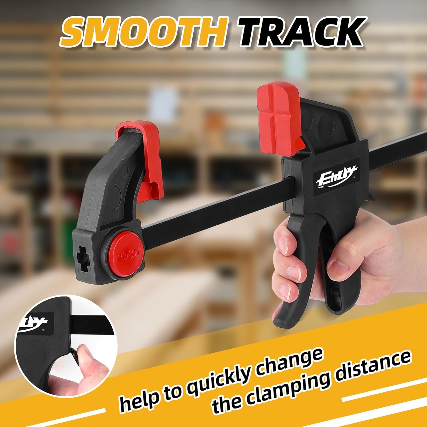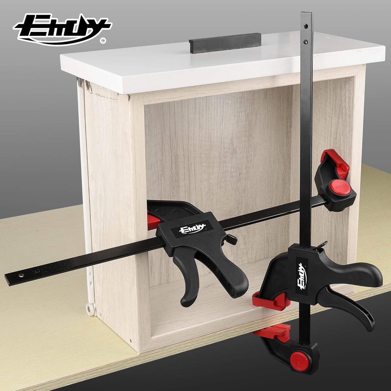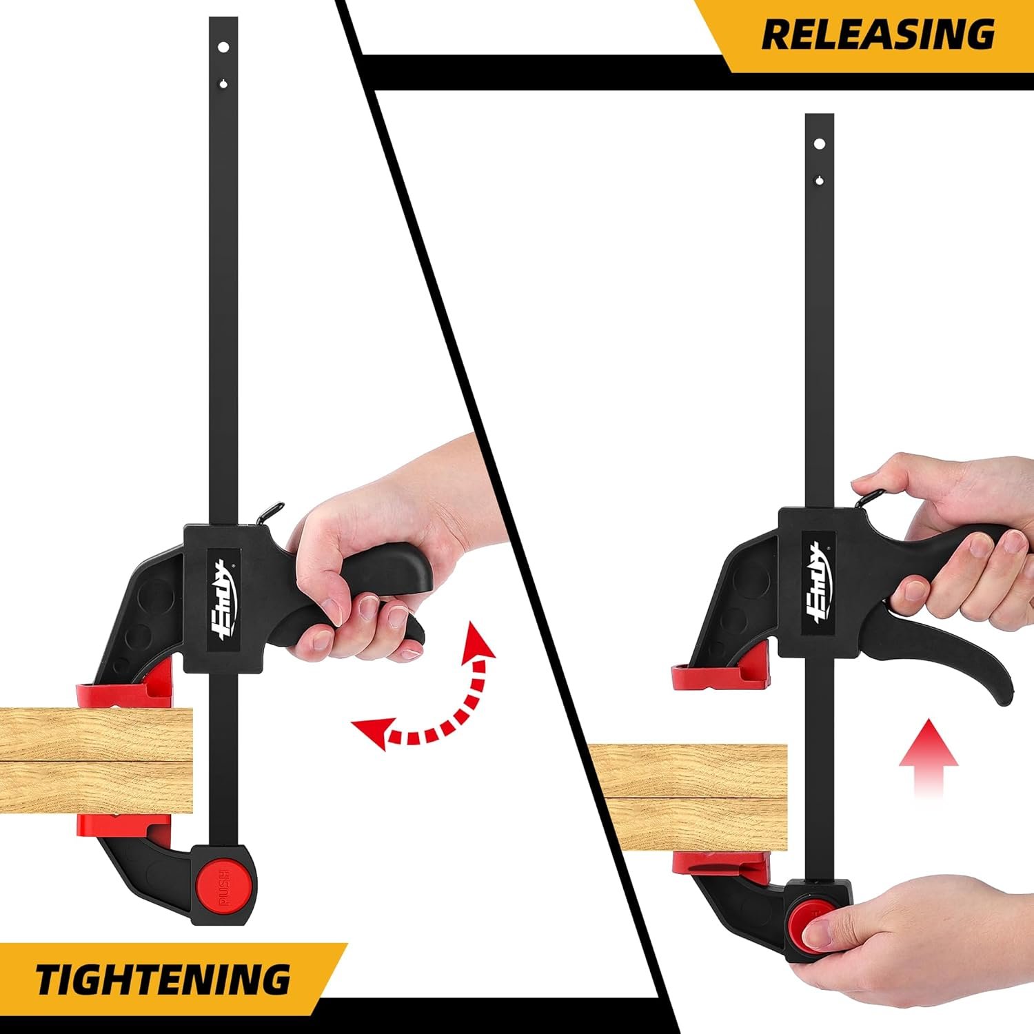 QUICK-CLAMP: The quick-release latch makes it so easy to take them off your project or adjusts the fix in seconds. Larger pads provide a larger area of thrust surface. More balanced force and parallel clamp.
