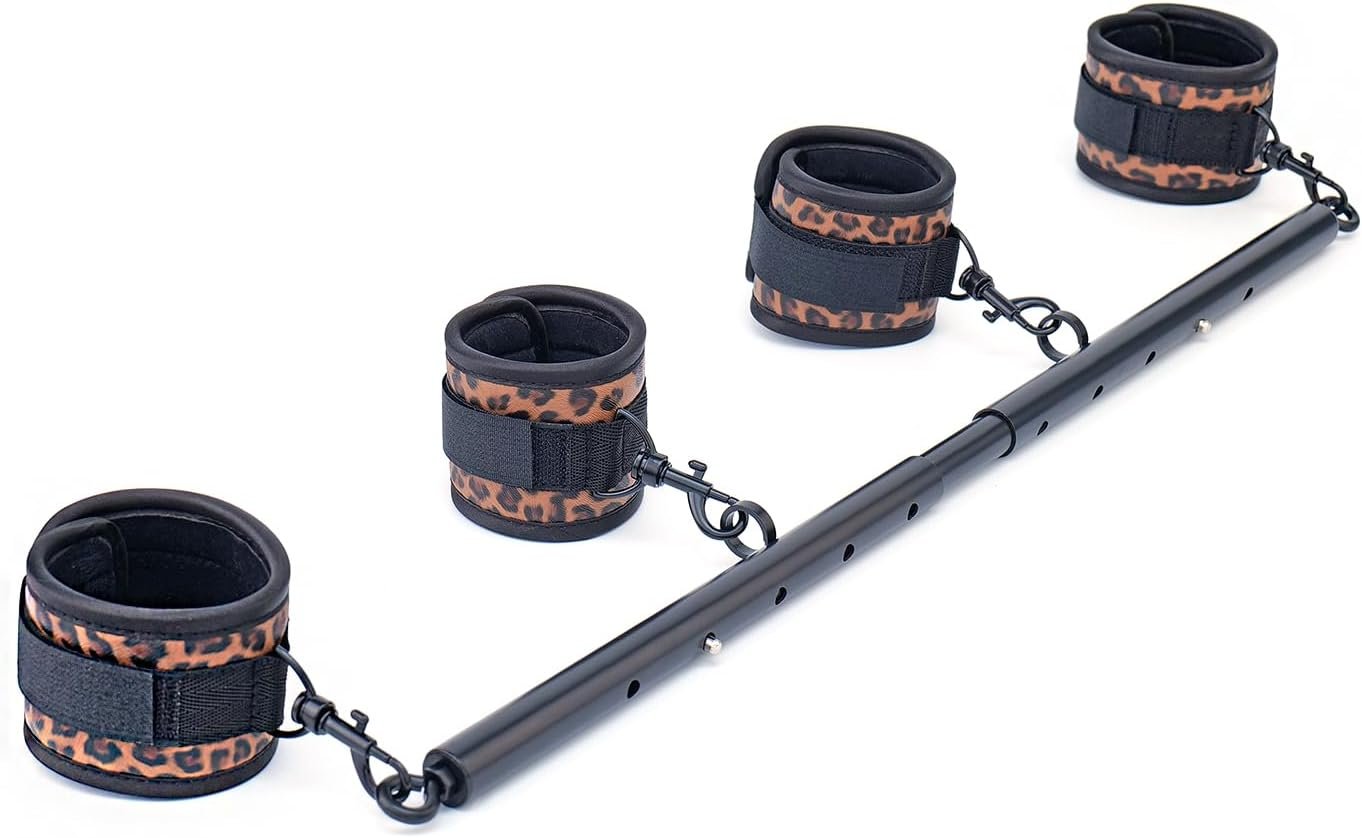 3 in 1 Heavy Duty Stainless Steel Expandable Black Spreader Bar with 4pcs PU Black Leopard Adjustable Straps,Workout Bar for Home Gym Training Bar,Portable Detachable Pilates Kit