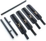 3 in 1 Heavy Duty Stainless Steel Expandable Silver Spreader Bar with 4pcs Furry Purple Adjustable Straps,Workout Bar for Home Gym,Portable Detachable Pilates Kit (Black+Black Embossed PU Kit)
