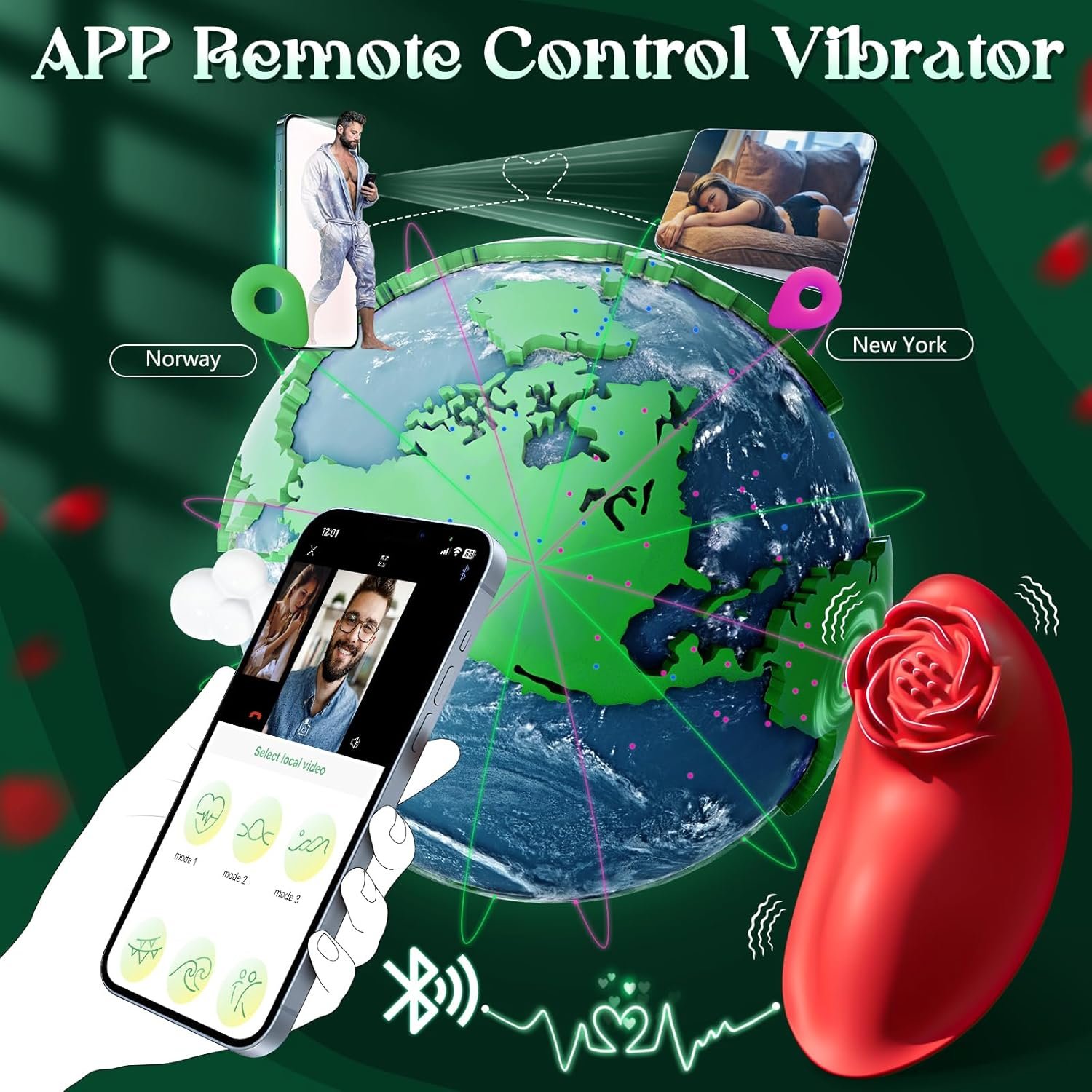 APP Remote Control Rose Sex Toy, 9 Vibration Clitoral Vibrator Double Motors Dual Stimulation, Long-Distance Fun G-spot Panty Vibrator Wearable Butterfly Vibrator for Woman and Couples