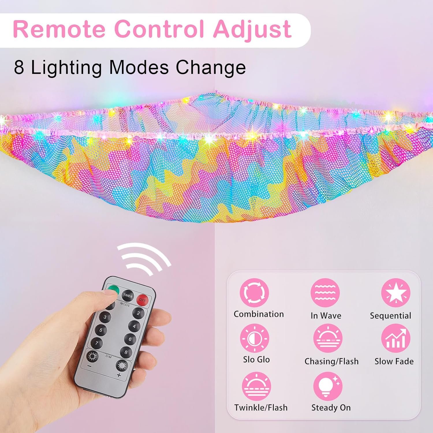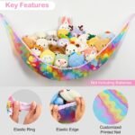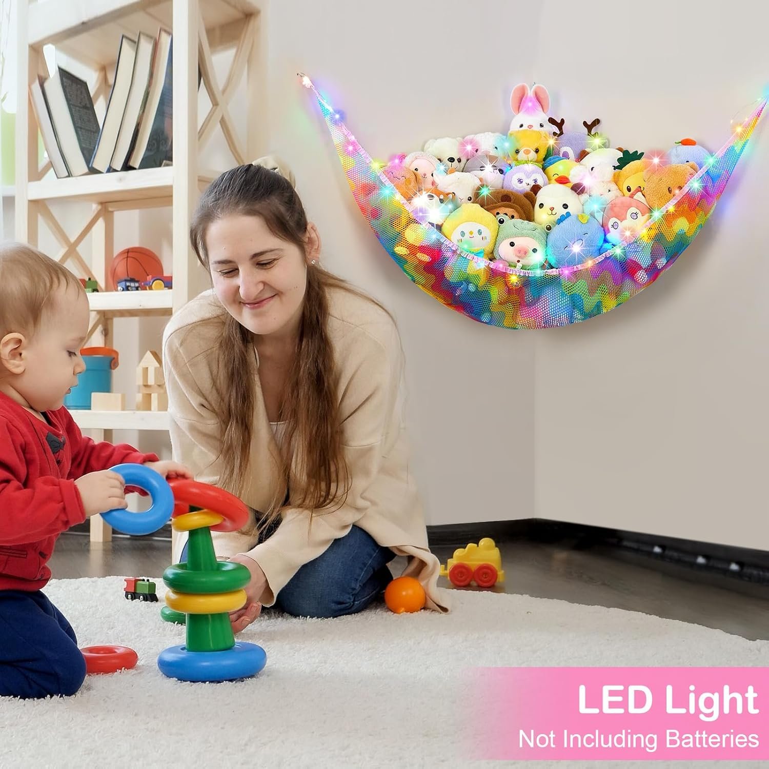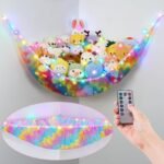 Basumee Stuffed Animals Net or Hammock with LED Light Hanging Toy Net Hammock for Stuffed Animals Storage Stuff Animals Hammocks for Nursery Kids Room with Remote Control, 8 Kinds of Lights