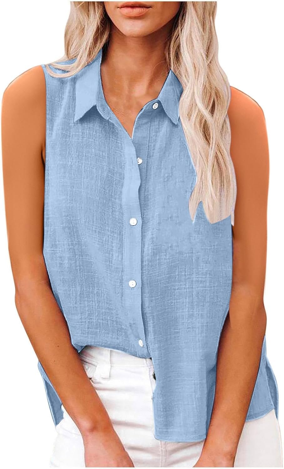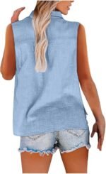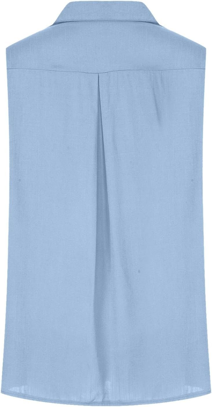 Cotton Linen Shirts for Women Sleeveless Collared Tops Oversized Button Up Blouses Work Shirts Casual Summer Tshirt