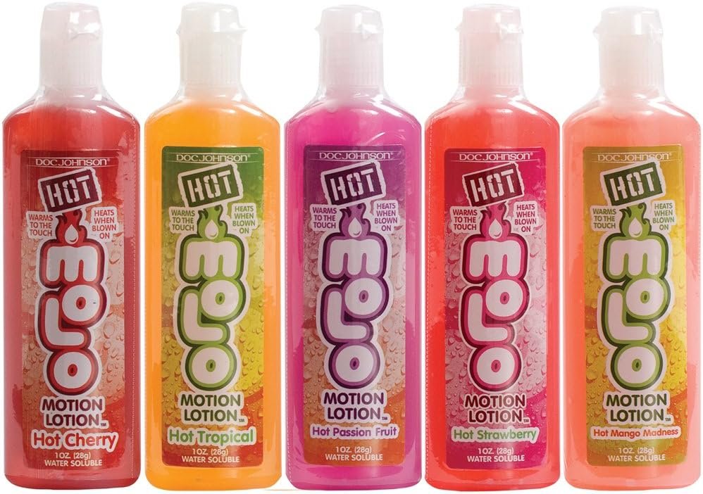 Doc Johnson Hot Motion Lotion – 5 Flavor Variety Pack – Flavored Warming Water-Based Body Glides – Warms to the Touch – Heats When Blown On – 5 x 1 fl.oz. (5 X 29.5 ml) – Multi-Colored