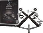 Fifty Shades of Grey Keep Still Restraint Kit – Over The Bed Cross Restraint Set – Faux Fur Lined Detachable Cuffs – Includes Blindfold & Door Hanger – 80 Inch Adjustable – Black/Grey
