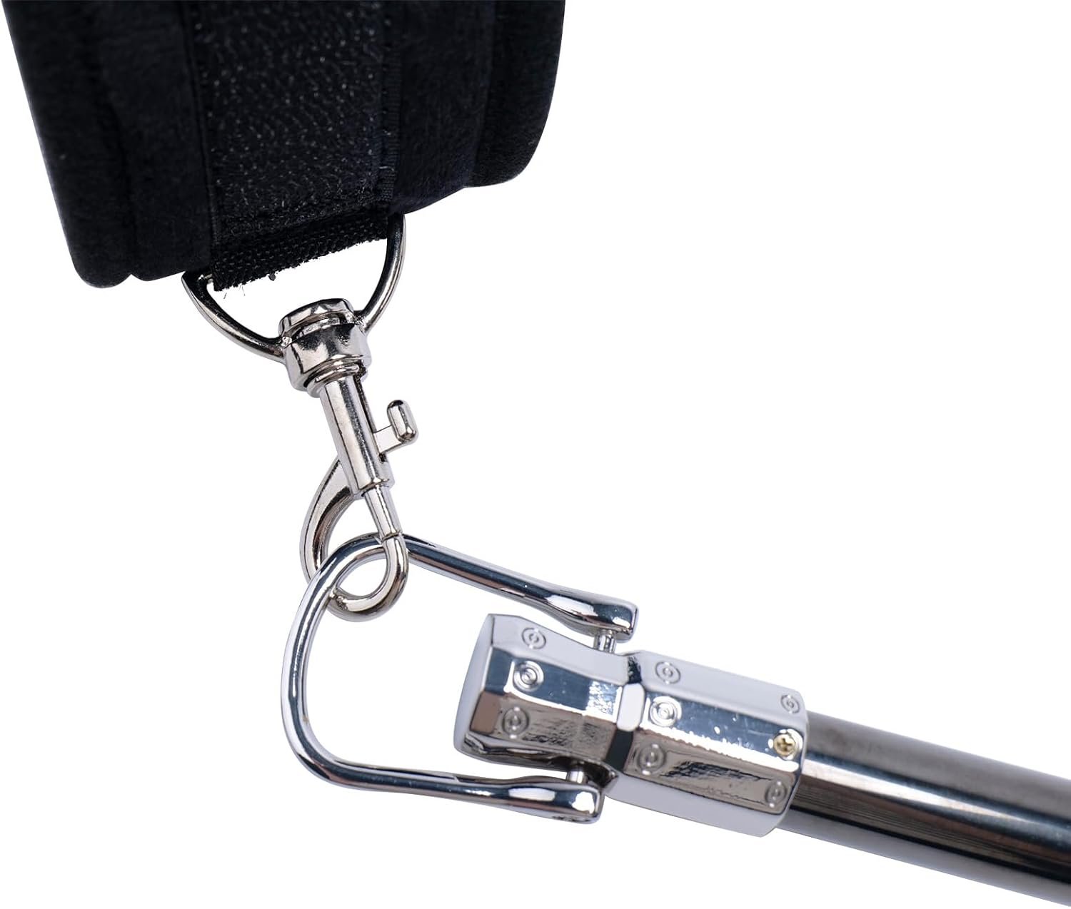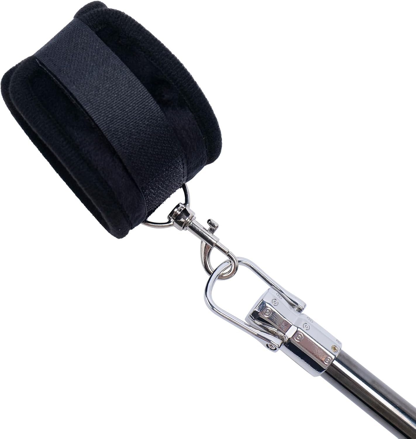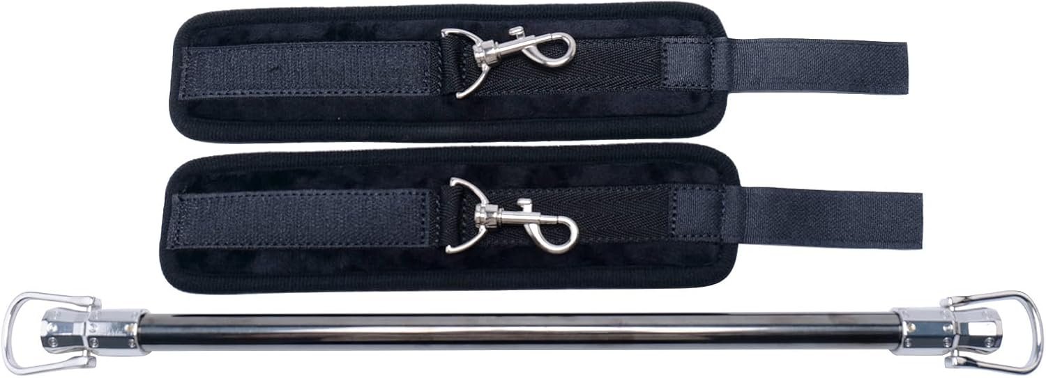 Fixed Spreader Bar Stainless Steel Silver Bar with 2pcs Furry Black Adjustable Straps,Sports Aid Training Fitness Gear Pilates Aid Kit, Home Restore Pilates Indoor Yoga Set