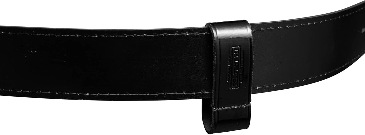 Perfect Fit black leather handcuff strap snaps onto police belt with a 1 snap design, strap is narrow saving space on the duty belt for other accessories. Fits 2.25 in. (58 mm) duty belts.