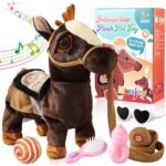 Marsjoy Black Walking Pony Toy Musical Singing Dancing Plush Interactive Walk Along Toy Horse with Leash Pony Robot Stuffed Animal for Boy Girl Ages 3+ H: 11.81″ Age 3+