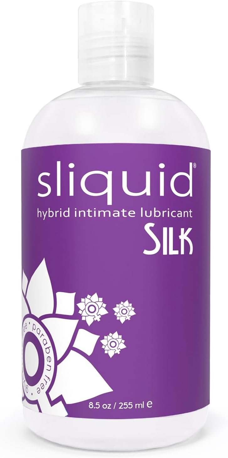 Silky, slippery, and natural-feeling, water-based hybrid Sliquid Silk, formulated with silicone and emollients, is the ultimate personal lube.