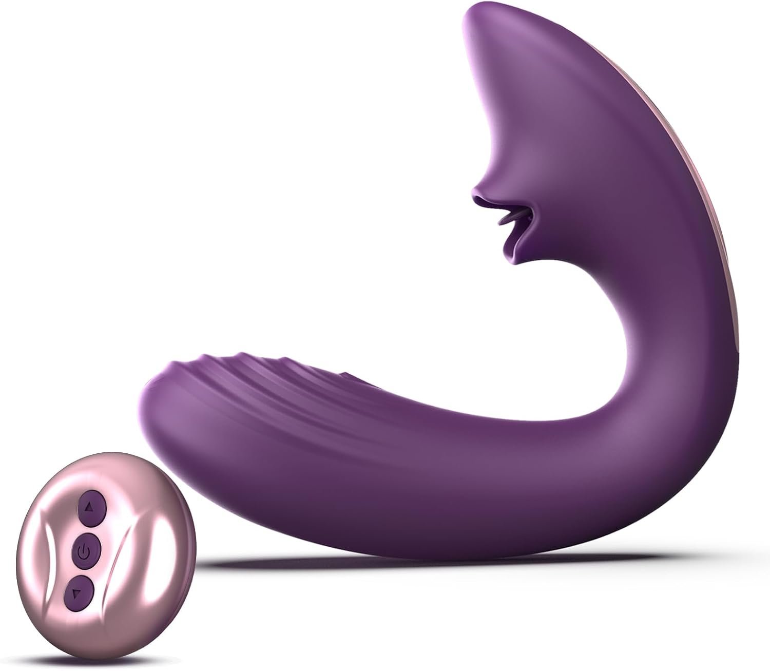 Tracy’s Dog Clitoral Licking G Spot Vibrator, Tongue Adult Toys with Remote Control for Women Couple Play, Vibrating Sex Toy for Double Stimulation with 7 Licking & 10 Vibration Patterns, Purple