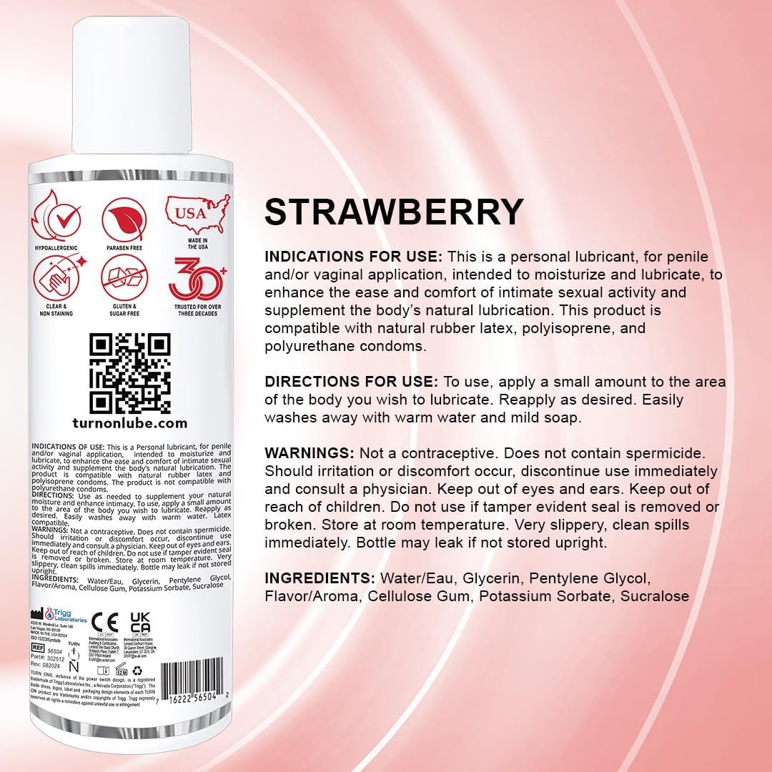 Turn On Strawberry Flavored Water-Based Personal Lubricant | Condom Safe, Sugar-Free Premium Lube for Men, Women, and Couples, 8 fl oz