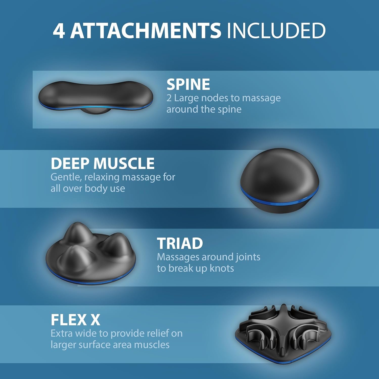 Premium Lithium-Ion Massage Heads: Includes exclusive attachments for spine, deep muscle, and broad surface applications as well as triad massage, catering to wide ranging massage needs