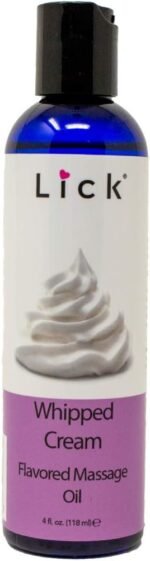 Whipped Cream Flavored Massage Oil for Couples – Edible Massaging Lotion with Vitamin E and Sweet Almond and Coconut Oil is Non Sticky and Gentle on Skin – Natural, Relaxing and Vegan (4 oz)