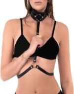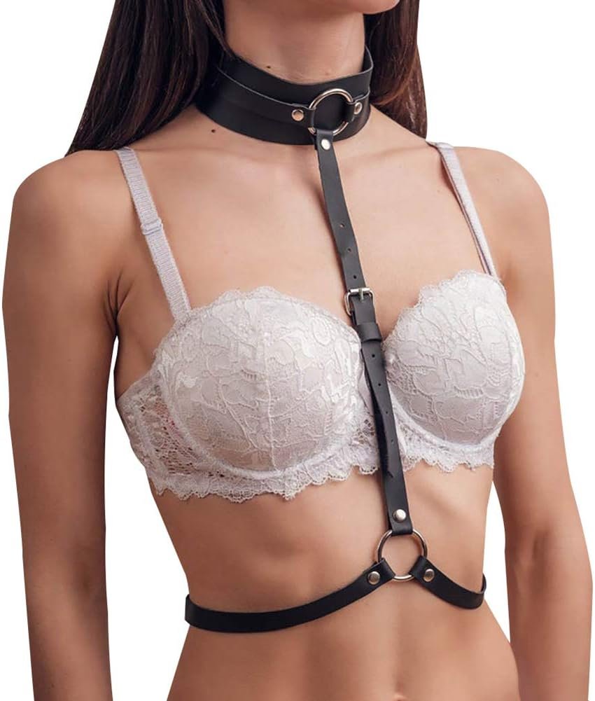 Women’s Leather Chest Harness Body Caged Bra Punk Waist Belt Gothic Strappy Adjustable Black