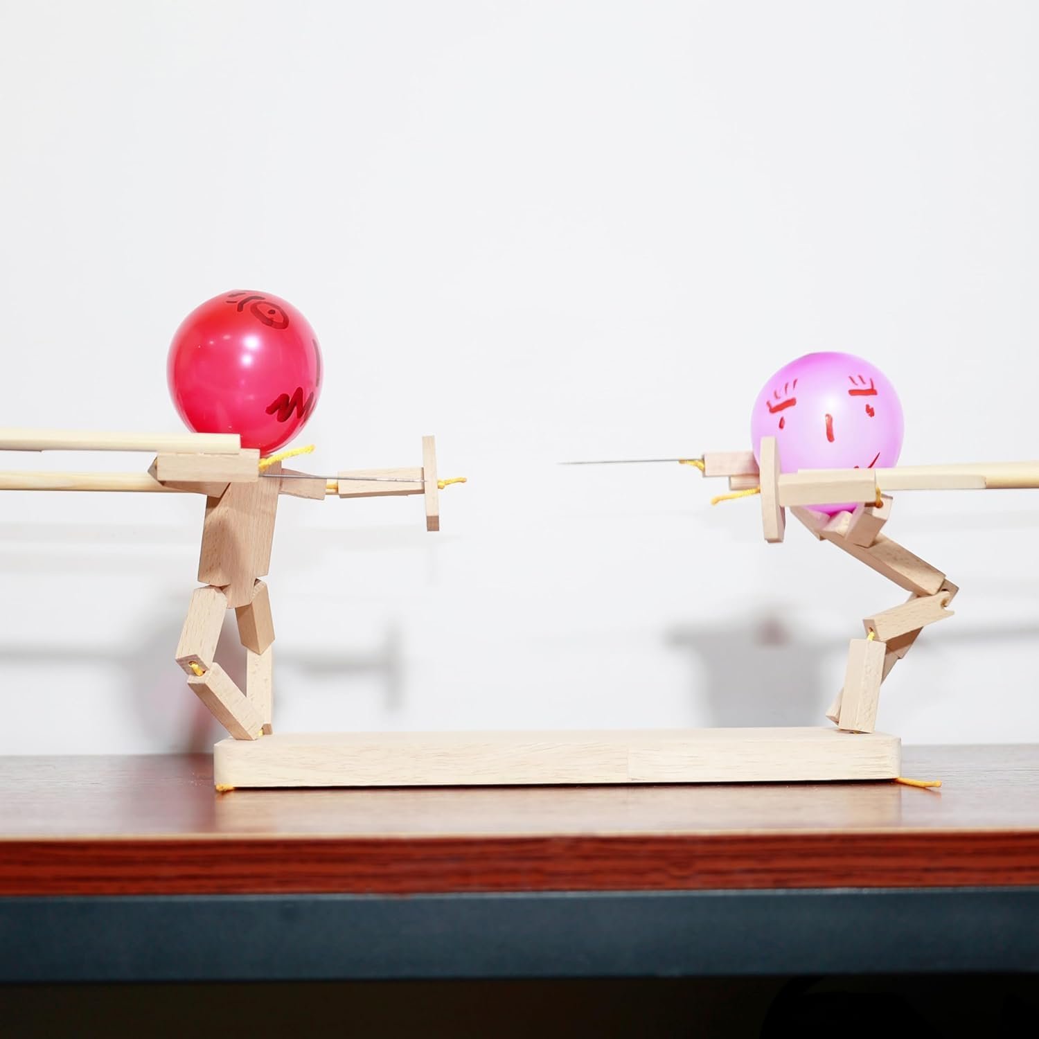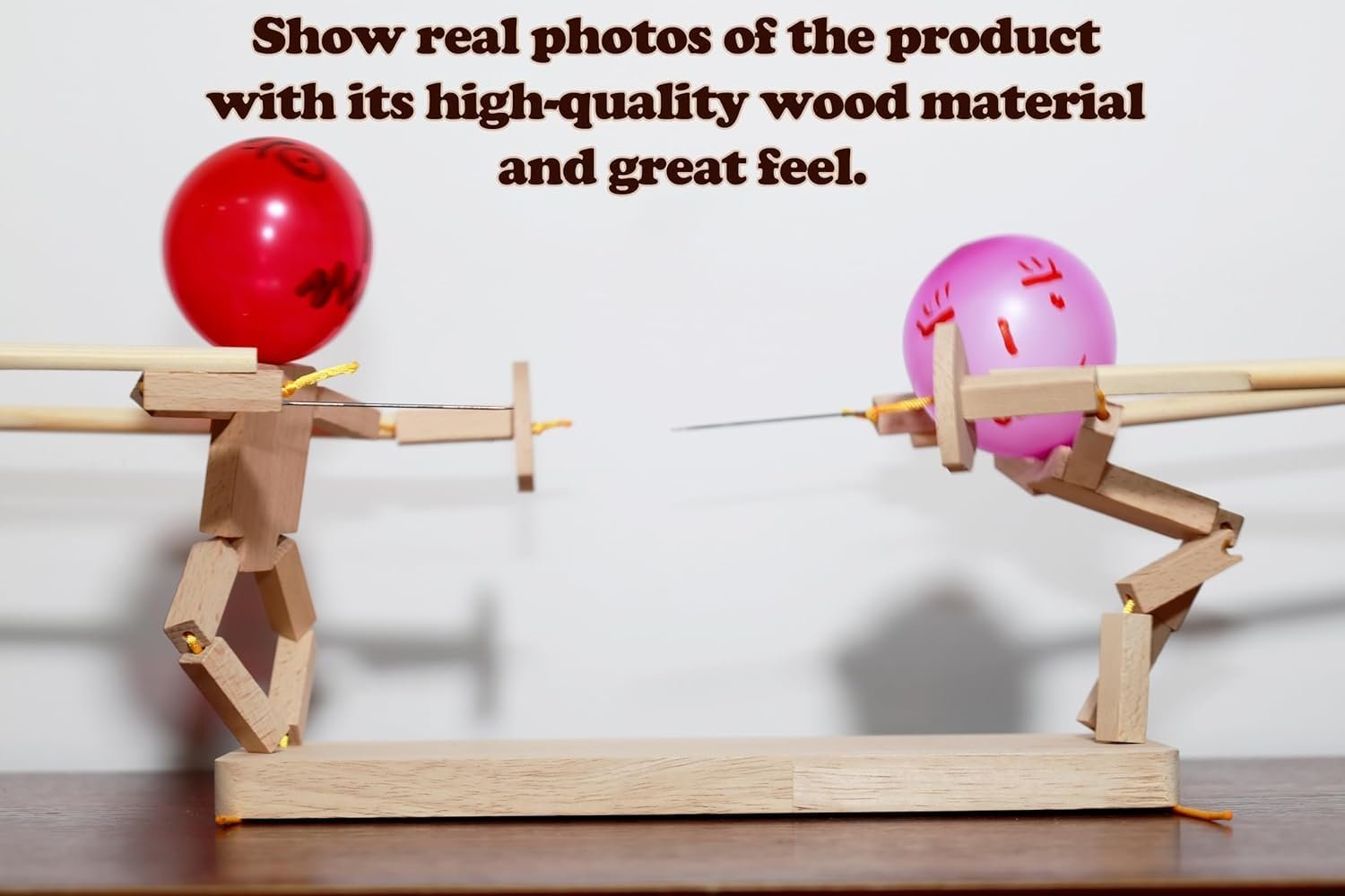 Wooden Fencing Puppets Balloon – Handmade Large 2025 New Man Bamboo Big Man Battle Board Games, Wooden Battle Bots Arena, Battle Bots(Balloon Bamboo Man Battle*1)