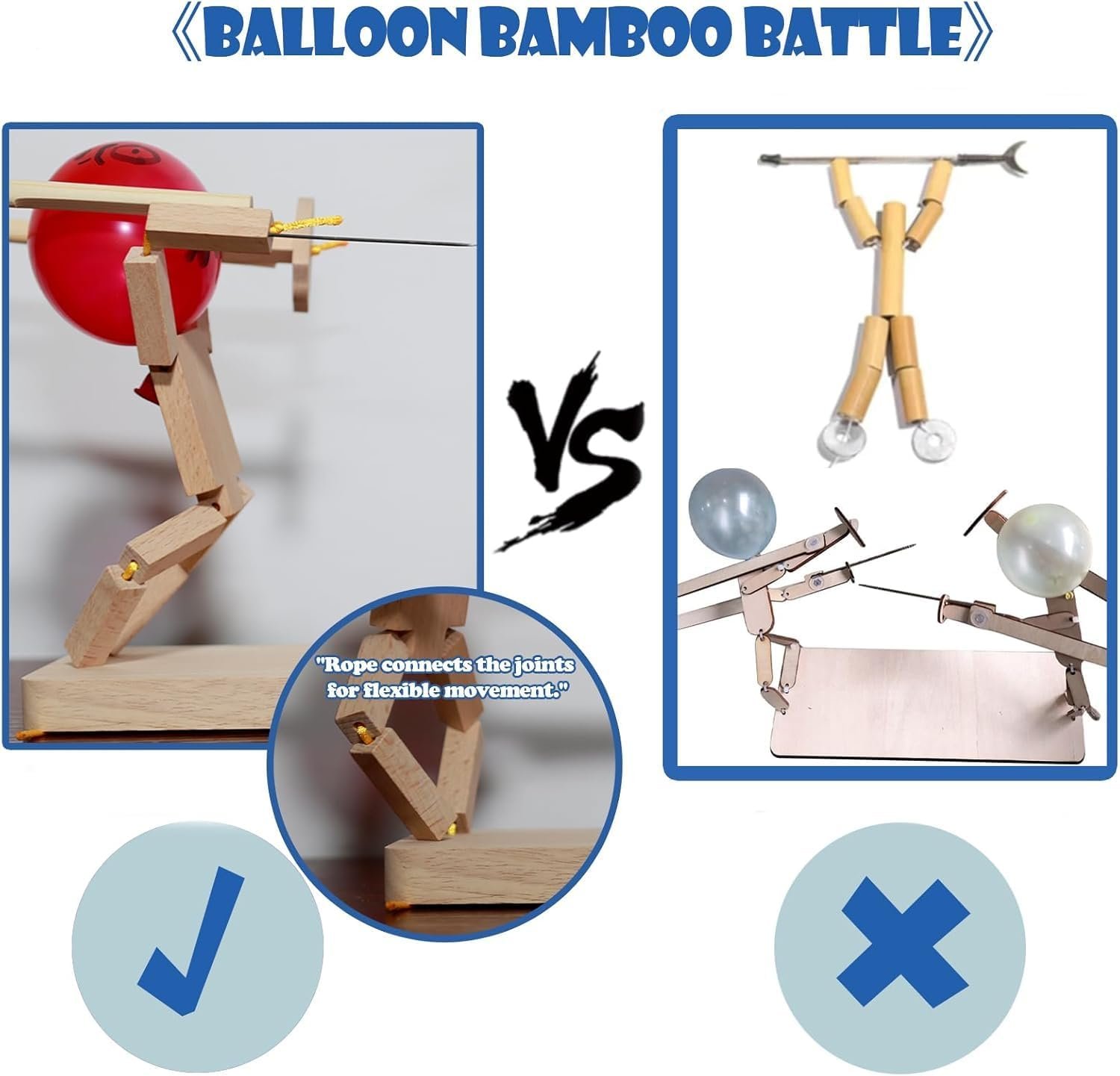 Exquisite Craftsmanship: Immerse yourself in artistry with our handcrafted bamboo robots. Unlike inferior wood products, each robot showcases meticulous craftsmanship. The upgraded version, assembled with durable rope, offers enhanced durability and an artistic touch. Smooth, rounded edges and durable metal connections ensure a safe and aesthetically pleasing gaming experience. Choose quality, choose Balloon Bamboo Battle!