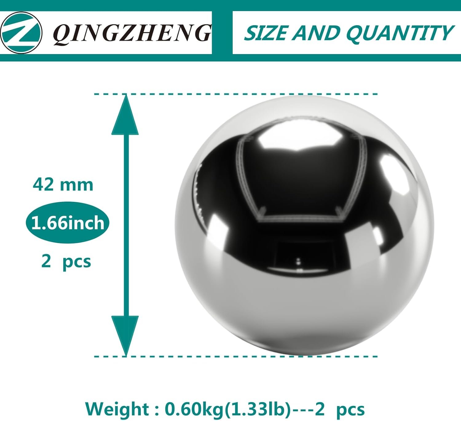 Z QINGZHENG 1.66 Inch,42mm Solid Stainless Steel Baoding Balls,Health Exercise Massage Handball (2pcs)